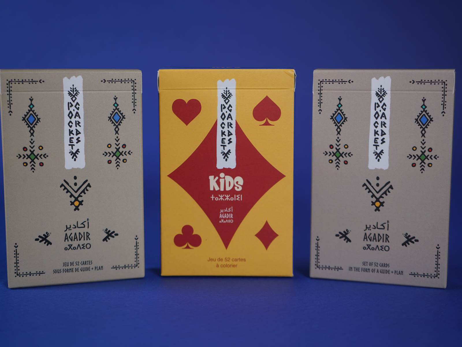 PocketCards Agadir est un guide de voyage innovant sous la forme d'un véritable jeu de 52 cartes. Chaque carte dévoile une facette d'Agadir et de sa région, entre mer, montagne et traditions.